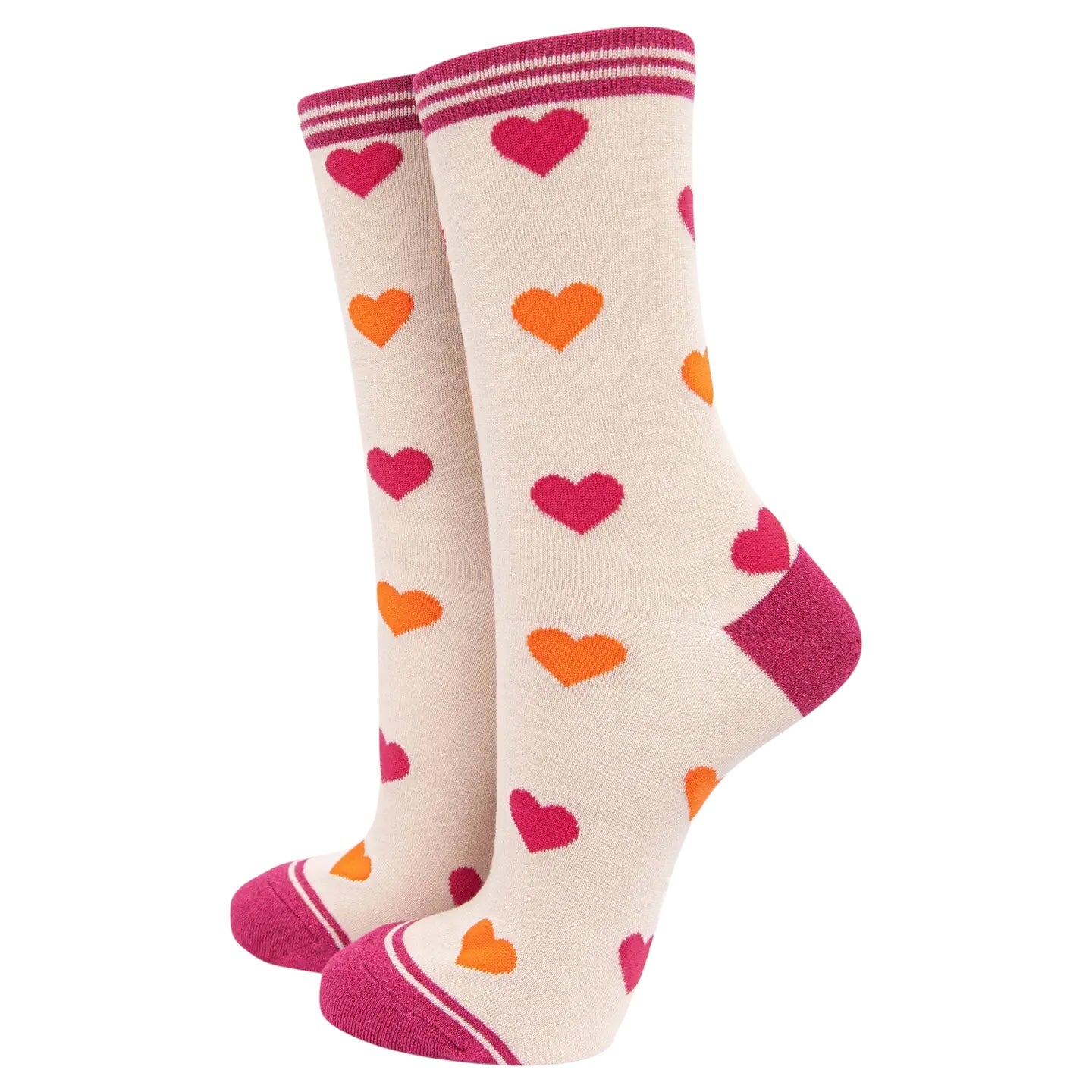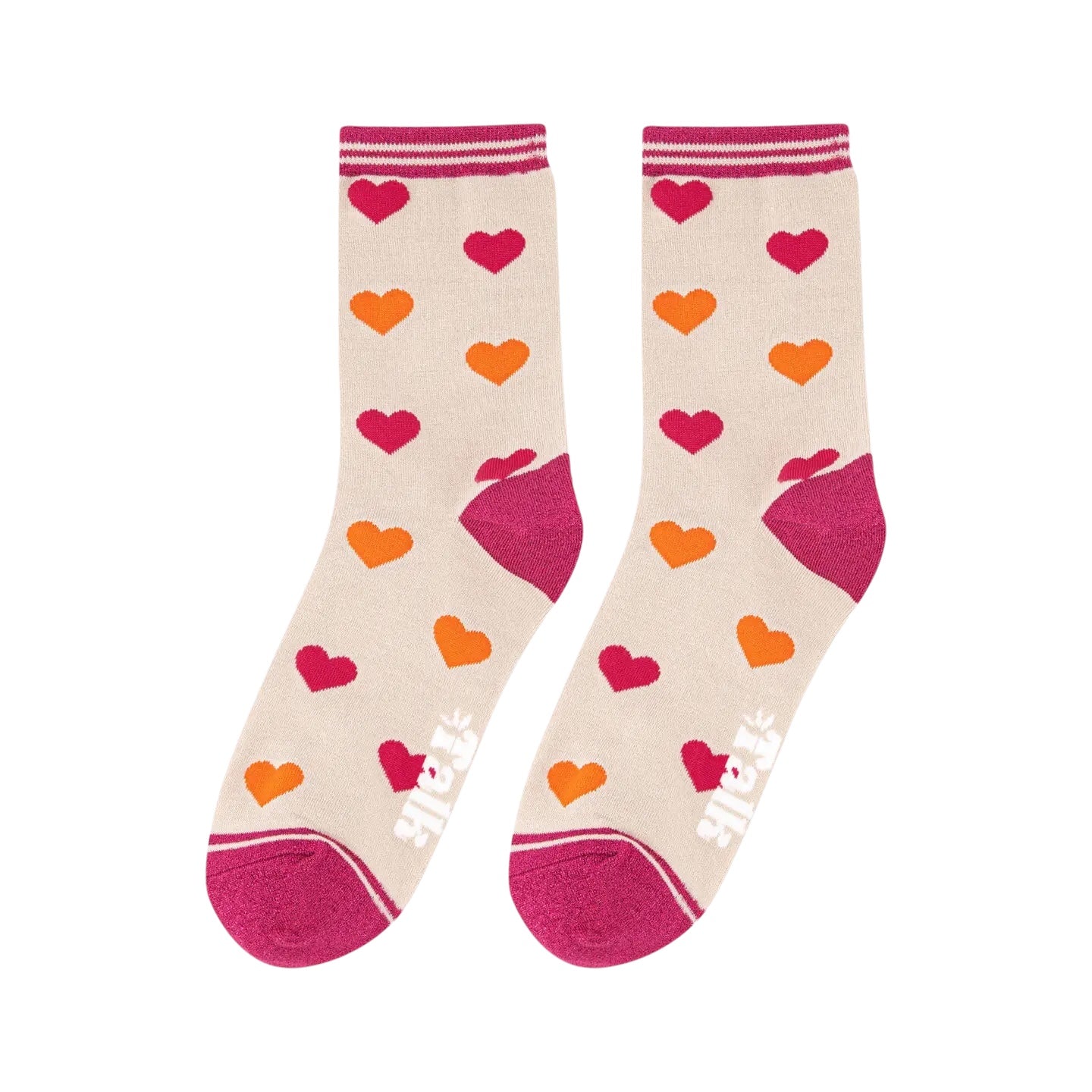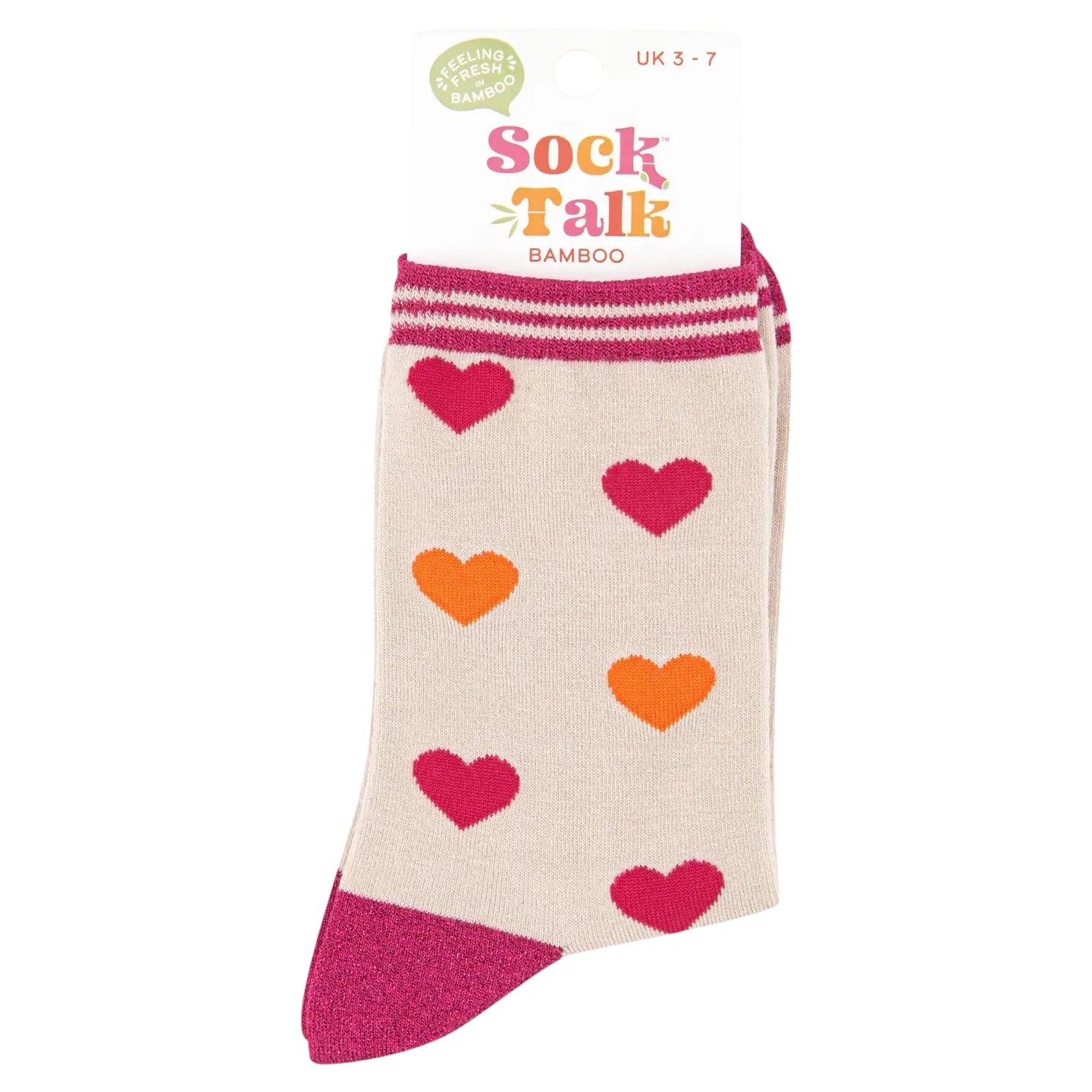 💕Säg det med en strumpa!! Mönstrad bambustrumpa. Med hjärtan och lyxigt glittrig häl, tå och kantsöm. Dessutom i det fantastiska materialet bambu!!