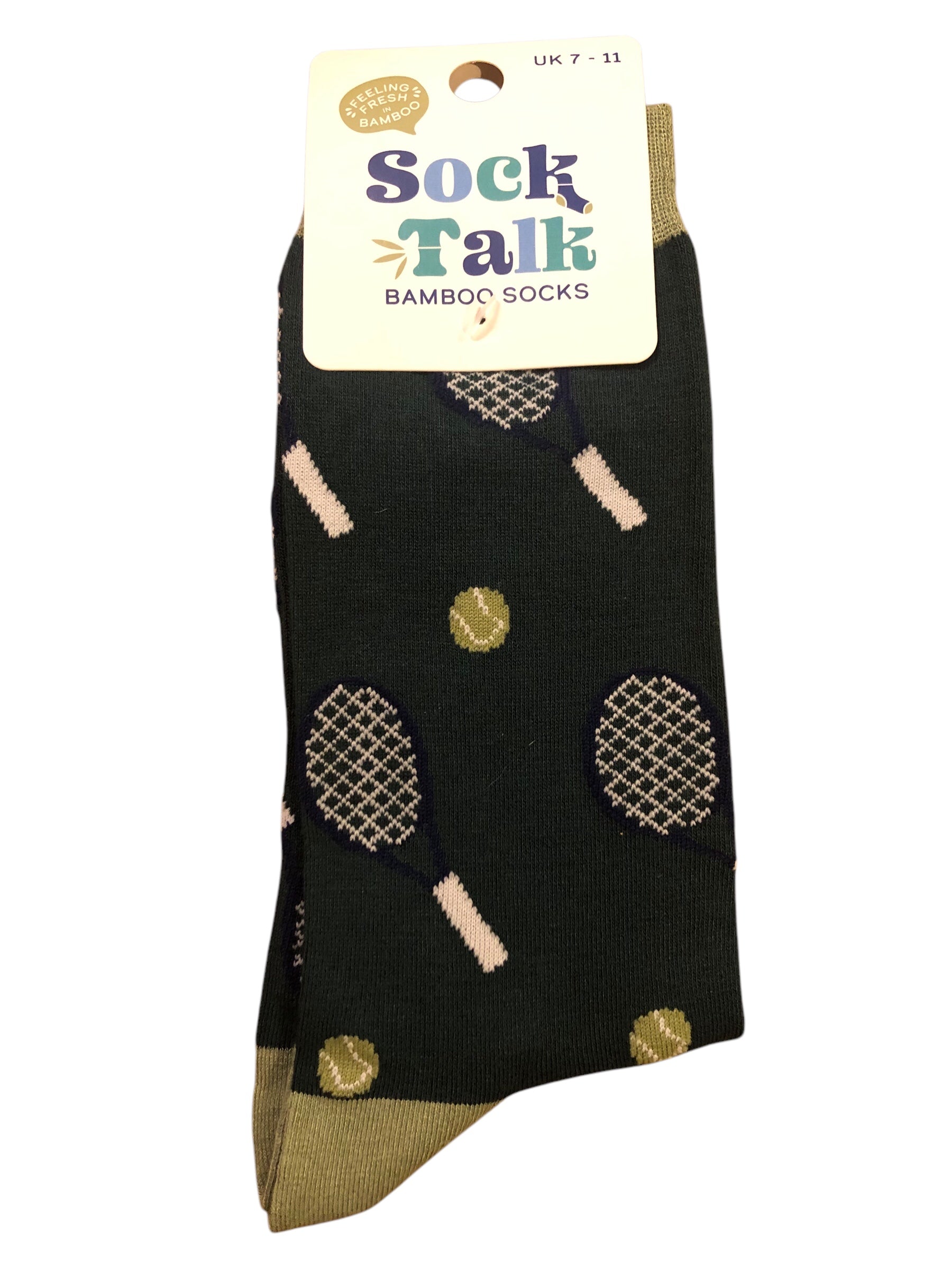 🎾Säg det med en strumpa!! Mönstrad bambustrumpa. För ”sportälskaren” med tennis-tema. Dessutom i det fantastiska materialet bambu!!