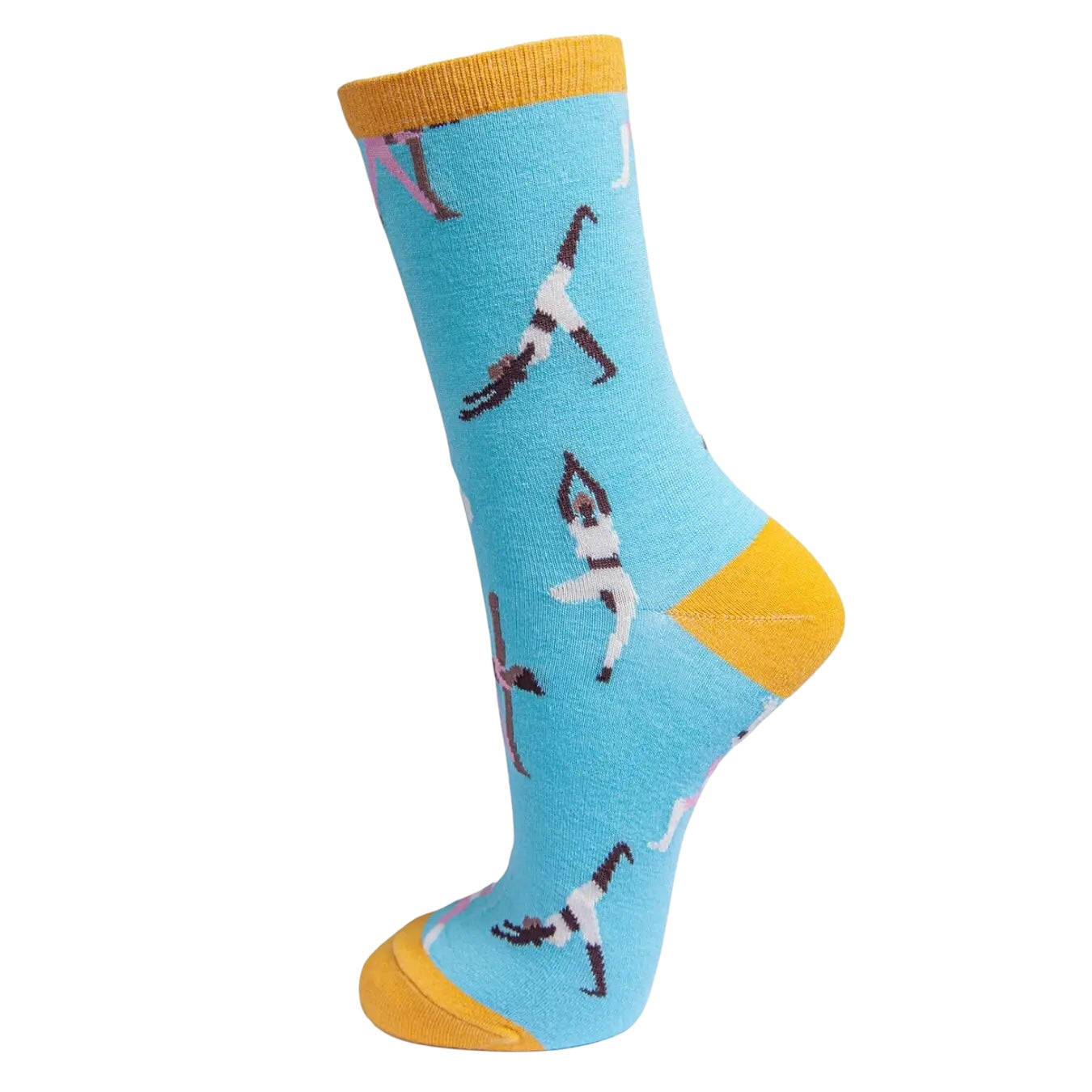 🧘♂️Säg det med en strumpa!! Mönstrad bambustrumpa. Med yoga-tema. Dessutom i det fantastiska materialet bambu!!