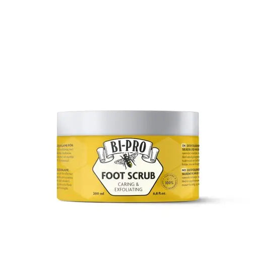 BI-PRO Exfoliating Foot Scrub kombinerar grovt salt för effektiv exfoliering med närande tistelolja, bivaxkorn och squalane för en silkeslen hudkänsla. Naturliga ingredienser och E-vitamin revitaliserar och skyddar huden, med en uppfriskande citrus- och blommdoft. Djuprengörande och återfuktande formula som lämnar dina fötter förnyade och silkeslena.